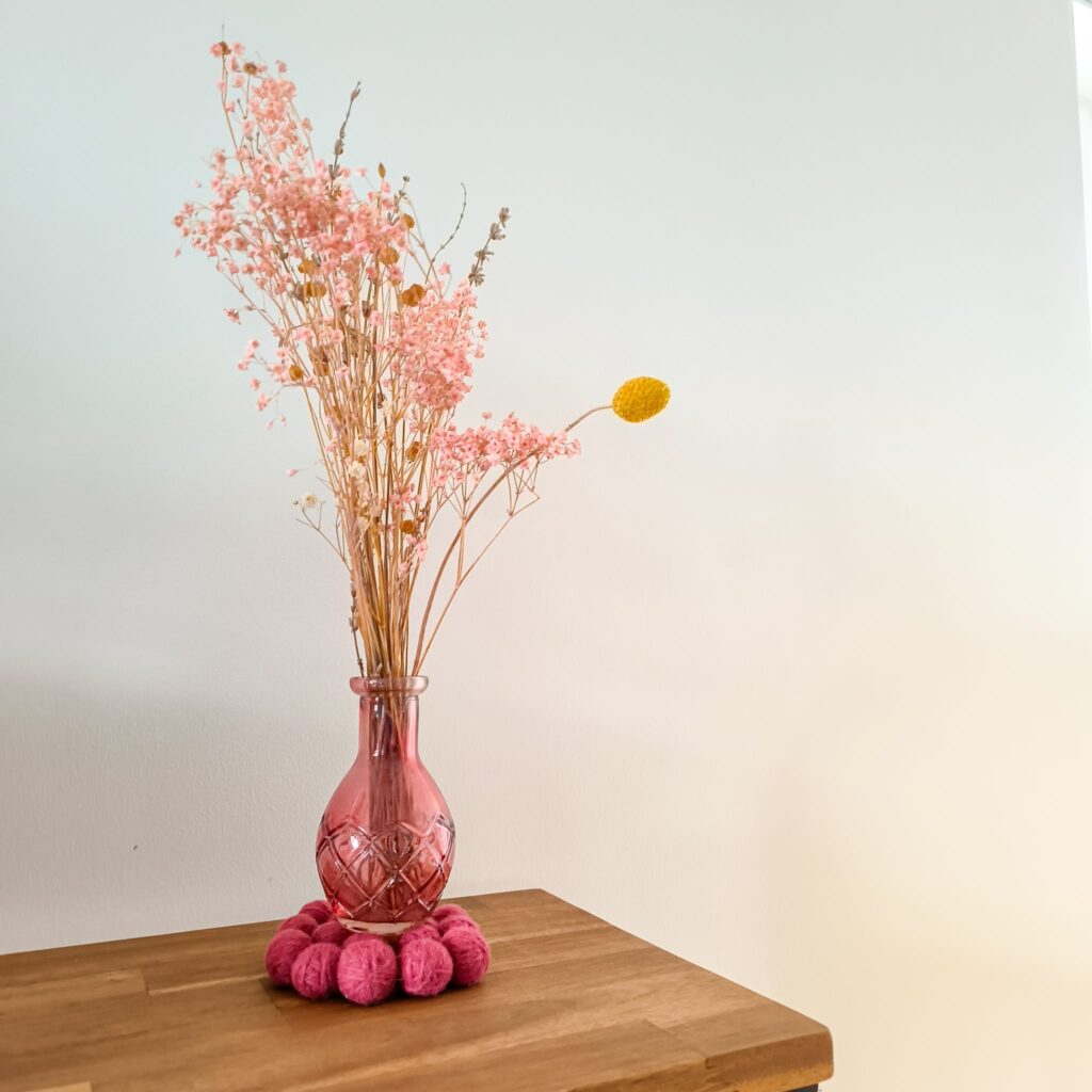Bei meliora.by.maren habe ich diese coolen Untersetzern mit gefilzten Wollbällchen entdeckt und das gerade ausprobieren müssen. Ich hatte etwas Mühe mit dem Filzen, aber mit drei grossen Tüchern und ein paar Tennisballen hat es dann doch noch geklappt. Ich würde die Bällchen das nächste Mal etwas grösser machen und fürs Filzen in einen Wäschesack tun. Eines ist nämlich in der Waschmaschine verschwunden und macht jetzt vermutlich mit all den verschwundenen Socken eine Party;-)