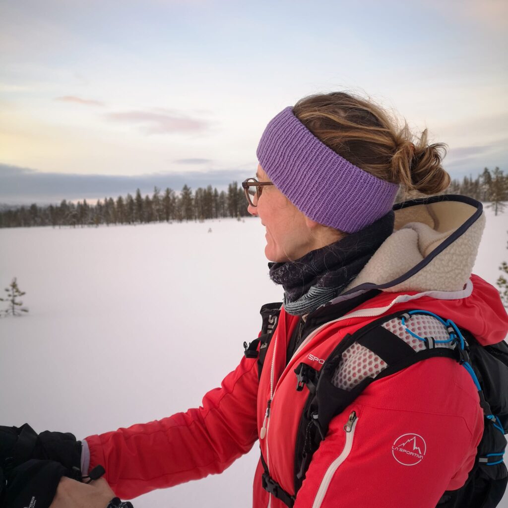 Ebenfalls aus zwei Fäden, aber von der Ballerina Chunky Mohair könntest du dir die Uva Balaclava oder Kragen von Refined Knitwear stricken. Alternativ schlägt sie 6 – 8 Fäden eines „normalen“ Seidenmohairs vor (ca. 210 m / 25 g) oder ein Faden Chunky Ballerina und 3 – 4 Fäden des dünnen Mohairs. Hier wären wir also bereits beim ersten Resteverwertungsprojekt.