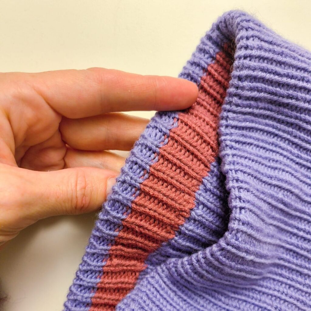 Ich habe euch bis jetzt etwas verheimlicht und zwar wie es auf der Innenseite meines violetten Weekend-Stirnbandes ausschaut. Da habe ich nämlich auch Restenwolle aufgebraucht. Aber pssst, das bleibt unter uns;-)