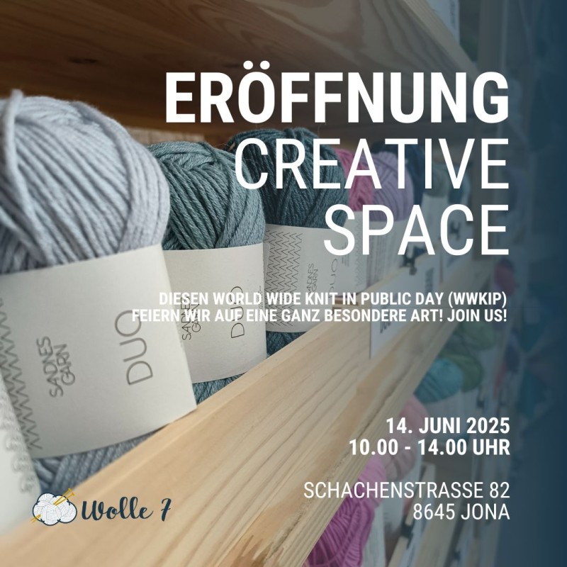 Gerne laden wir euch zum Tag der offenen Tür in unseren neuen Creative Space ein und zwar am WWKIP (World Wide Knit in Public Day) am 14. Juni.